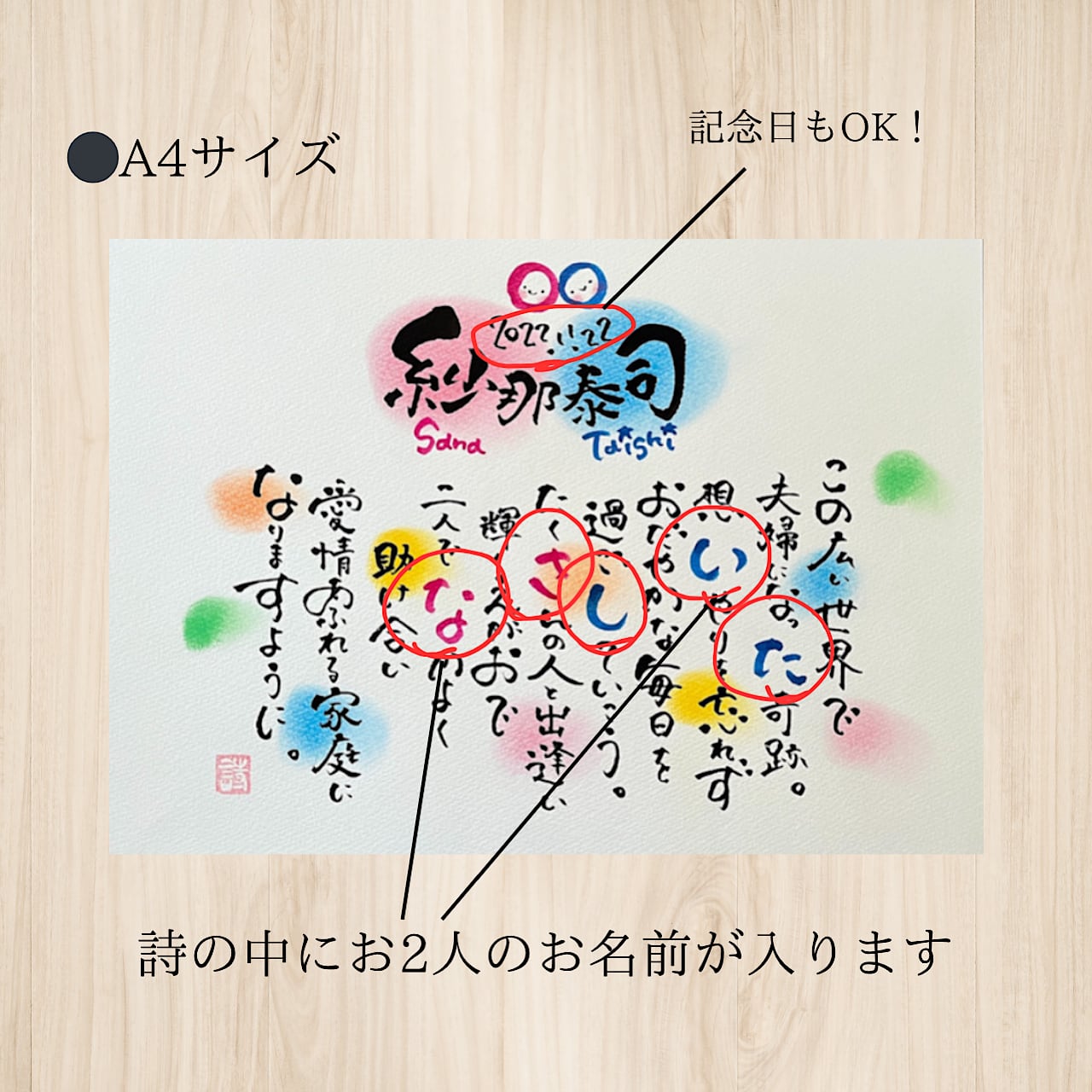 ・一緒に入れたい言葉・記念日など